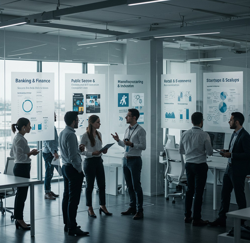 Banking & Finance – secure data architectures, AI scoring, compliance systems